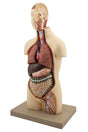 This model, representing a young human, is half-life size with 9 removable parts. The head is dissected in half to show the skull and brain, as well as the internal structures of the mouth, neck and sinuses. Bisected lungs, 2 part heart, liver, stomach, small and large intestine and half of right kidney can be removed for closer study. An excellent model for younger students, but has good enough detail that it can be used as a study tool for high school and early college.