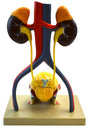 This model of the human male urinary system is approximately life size and composed of 5 parts. It features kidneys with adrenal glands, veins and arteries, ureters, bladder, prostate and a section of the pelvis. Other structures shown are abdominal aorta, inferior vena cava, renal veins and arteries, external iliac vein and artery, and renal pelvis. The right kidney, bladder and prostate are bisected to show the internal structures. Excellent for study of kidney function and urinary health.