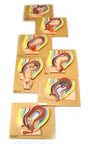 This set of 7 anatomical cross sectional pelvic models demonstrate the major stages of child birth: A. The fetal head settles into the pelvic inlet B. The first stage of labor when the uterus begins contracting irregularly C. Dilation of the mother's cervix D. Presentation of the head E. Delivery and rotation of the babies head F. The afterbirth and placenta G. Strong contractions in the uterus expel the placenta. The models are mounted on a solid 18"x14" base