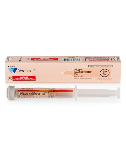 Our Practi-Naloxone™ I.V. (1 mg/mL) in a 2 mL pre-filled luer lock syringe is for clinical training only. Wallcur's Practi-Naloxone simulates the opioid antagonist drug, Naloxone. Teach a variety of skills to your students of nursing and EMT programs.