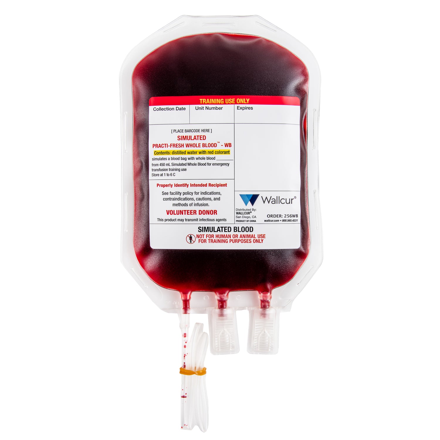 Practi-Whole Blood Bags™ (all types) for clinical training. Simulates 450 mL bag of whole blood (300 mL of blood in a 450mL bag). Train your students to properly read a blood bag including the bar-codes and blood type, as well as how to properly spike a blood bag.