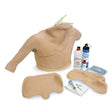 All appropriate landmarks are palpable for realistic identification of insertion sites. Synthetic skin may be removed from shoulder to reveal dissected musculature and location of veins, arteries, and other landmarks. With the skin in place, you can insert the needle introducer. The tactile sensation is dramatically realistic.