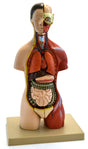 Half size torso model has excellent detail of many human anatomy structures. Brain and internal organs are removable for closer study, and the internal cavity is painted in great detail. The left side of the torso shows the musculature of the human body and the back is open to show structure of the vertebrae and spinal cord. Includes removable female reproductive organs. Great for classroom reference or individual study at any grade level.