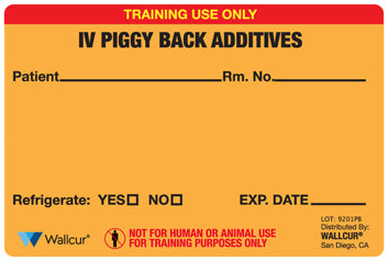 Blank Practi-IV Bag and Practi-IV Piggy Back Bag Labels are for clinical training only and to be used only with Practi-Products. Note your Practi-Med of choice to teach a variety of clinical skills to your students. Just label, peel and stick!