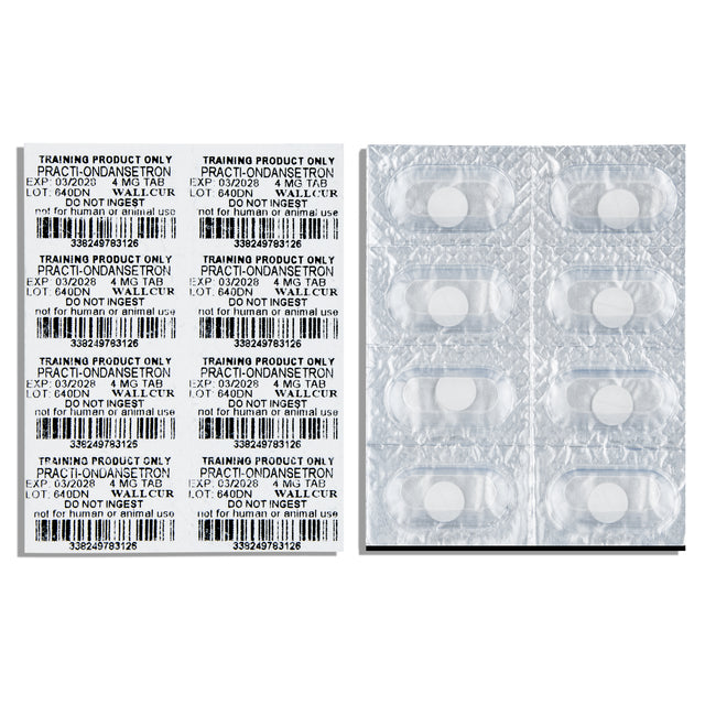 Practi-Ondansetron simulates the unit dose oral medication ondansetron (Zofran®), an antiemetic used to prevent nausea and vomiting caused by surgery or by medicine to treat cancer.